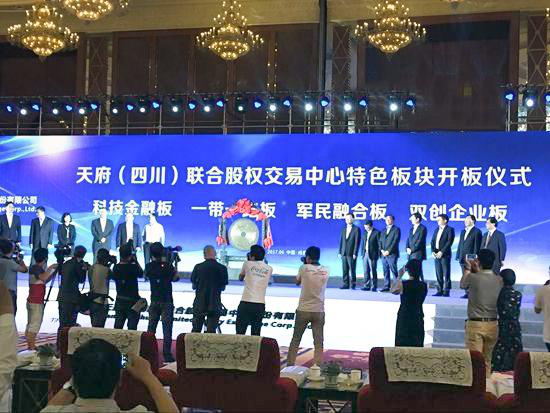天府(四川)联合股权交易中心是经四川省政府同意的,省内唯一合法的区域性股权市场运营机构, 开设有“科技金融板”“一带一路板”“军民融合板”“双创企业板”四大特色板块。由成都高新区牵头设立的“双创企业板”, 定向打造为省内创新创业企业提供投融资服务、成果转化服务、电商交易服务、媒体推广服务、 政策应用服务的线上线下一体化综合性服务平台。